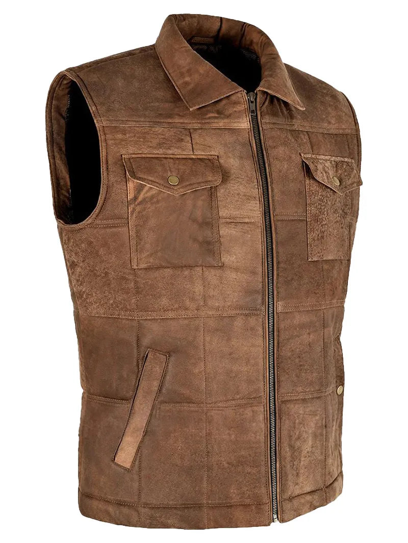 Body Warmer Vest Vintage Brown Buff Gilet Puffer Quilted Waistcoat 9595