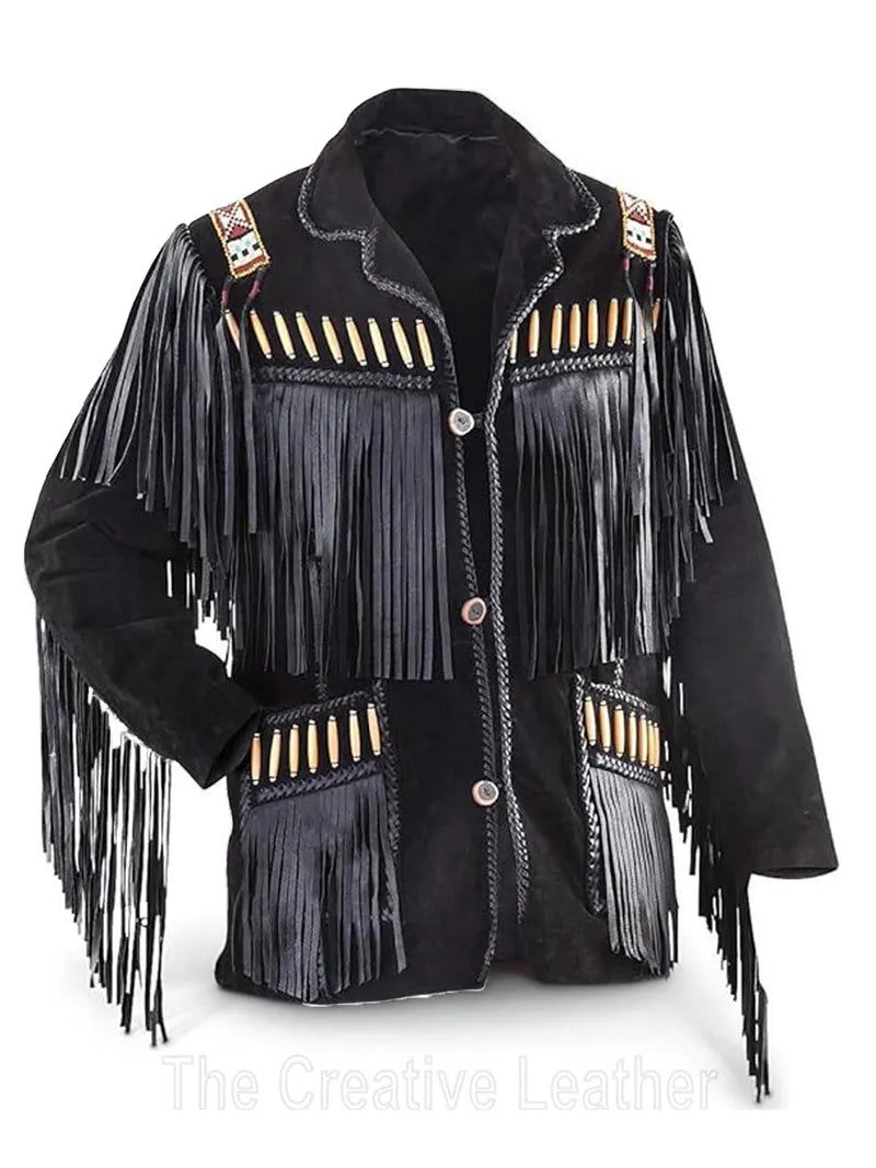 Mens Black Suede Fringe Leather Jacket